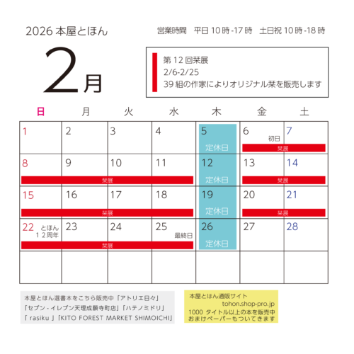 2026年2月営業カレンダー